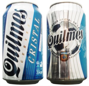 Sobre a bola, o escudo da seleção Argentina nesta moderna arte da lata da Quilmes Cristal para a Copa da Alemanha.