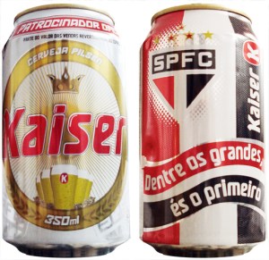 Na frente da lata, no pescoço, a cervejaria avisa que é Patrocinador Oficial do clube e que parte das vendas da cerveja será convertida ao clube.