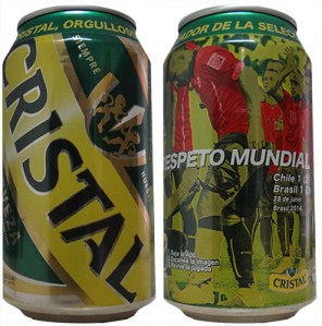 A chilena Cristal lançou um set de latas com cinco grandes momentos da seleção de seu país.