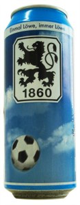 Listrada em celeste e branco, a lata traz de um lado a cidade de Munique e do outro o Olympiastadion, casa do 1860.