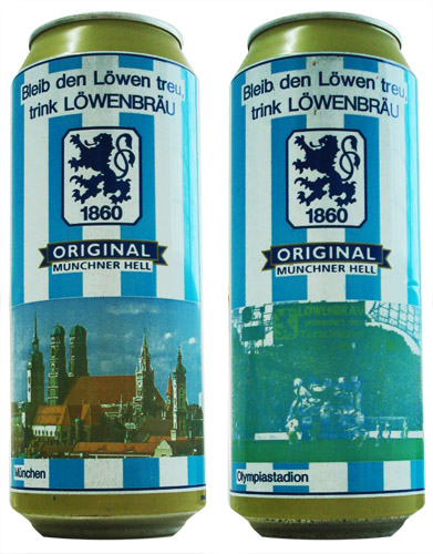 A Löwenbräu, nos anos 90, elaborou esta lata para o 1860 Munchen, clube tradicional de Munique e maior rival do Bayern.