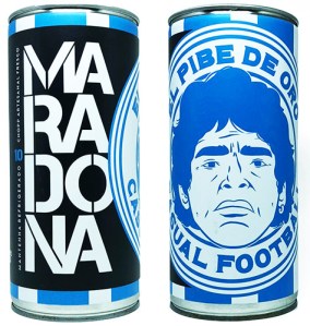 Maradona, el pibe de oro, recebe homenagem em lata de 1 litro de chopp da parceria Drible Old School Football com a Boteco Meio Fio.