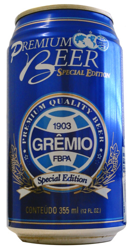 A lata Grêmio Premium Beer “Special Edition” foi lançada no final de 1995, e sem dúvida é uma das mais bonitas das muitas que foram lançadas nessa época. Um azul muito bonito predomina na lata importada pela MAARA e produzida nos Estados Unidos.