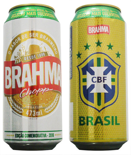 Esta é a versão de 473ml da lata que a Brahma lançou para a Seleção Brasileira na Copa de 2010.