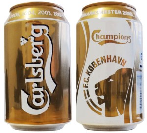 Lata dourada para comemorar os títulos do FC Copenhagen.