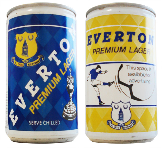 Esta lata do Everton foi lançada nos anos 80, fabricada em aço, com a predominância do azul e amarelo.