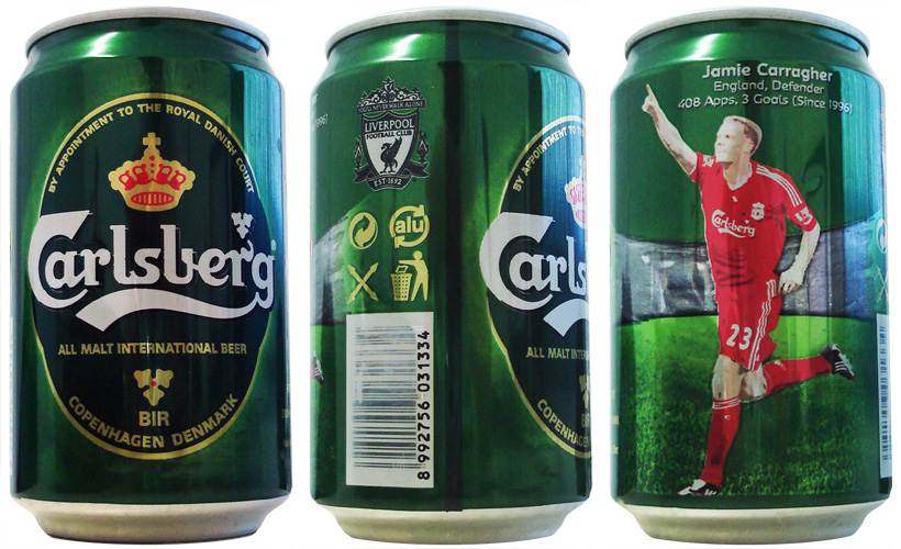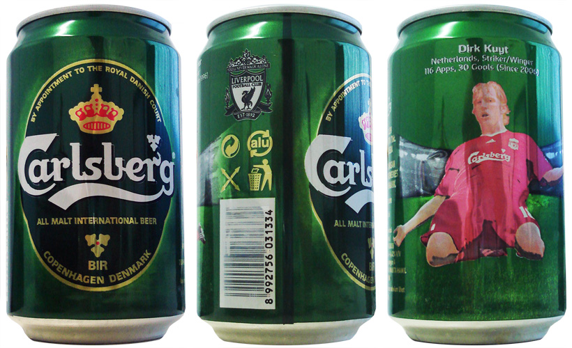 A Carlsberg durante anos patrocina a equipe do Liverpool e produz mais esta lata da equipe.