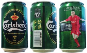 Mais uma lata do set do Liverpool produzido pela Carlsberg da Indonésia, que traz Steven Gerrard, capitão e meio-campista da equipe vermelha.