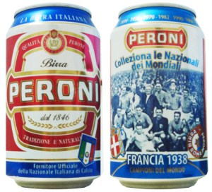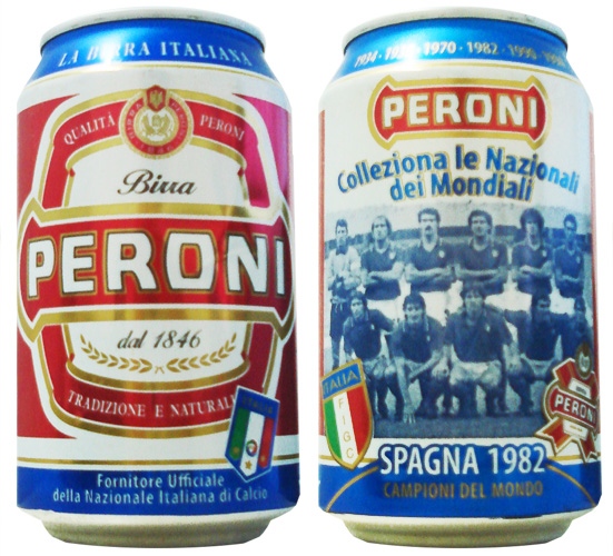 A última lata do set da Peroni cita os dois primeiros títulos de Copa do Mundo da Azzurra.