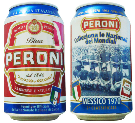 A cerveja oficial do Campeão do Mundo: é desta forma que a Peroni se define nesta lata lançada em 2009.
