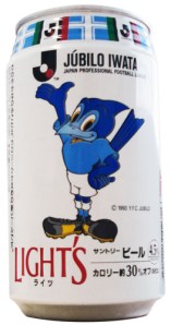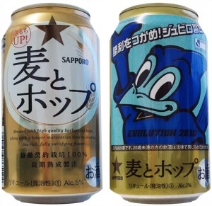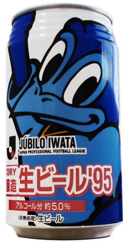 O mascote do Jubilo Iwata ocupada toda a parte de trás da lata da série da Sapporo.