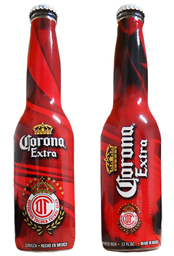 O Deportivo Toluca tem como mascote o diabo e seu uniforme é todo vermelho, que foi representado aqui na garrafa do clube lançada pela Corona. Tudo isso para amedrontar os adversários que vão querer fugir do “coisa ruim”!
