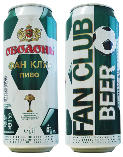 O clube e cervejaria Obolon se misturam completamente. Em 2002 a Obolon (cervejaria) lançou essa lata para os fãs de seu clube de futebol, o Obolon FC, mas cadê o escudo do clube?