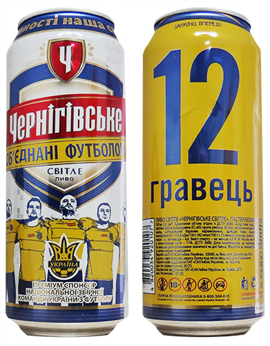 Na lata, a equipe ucraniana com o escudo da Federação à frente, e nas costas a indicação do “12º jogador”, a torcida.