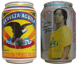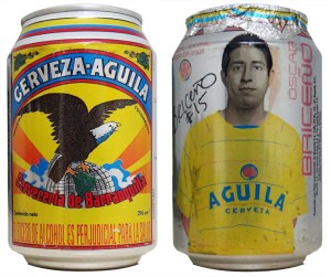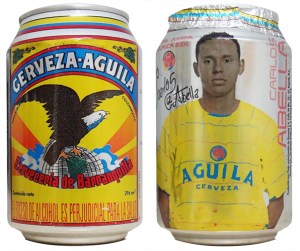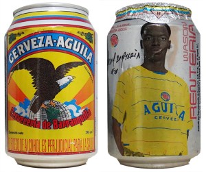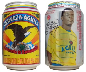 O voltante estampou uma das latas do set da Aguila quando atuava pela Seleção Sub 20 da Colômbia.