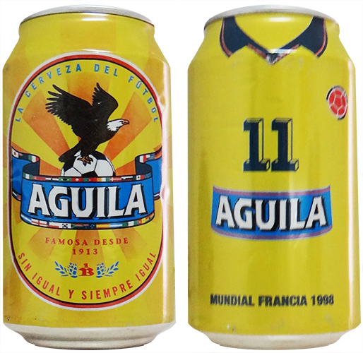 A cervejaria Aguila relembra as participações da Colômbia em Campeonatos Mundiais com um belo set de latas.