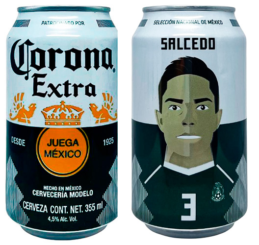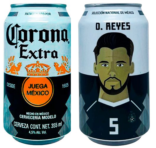 As caricaturas dos selecionados mexicanos para a Copa da Rússia estampa, a Corono Extra, na série Juega México.