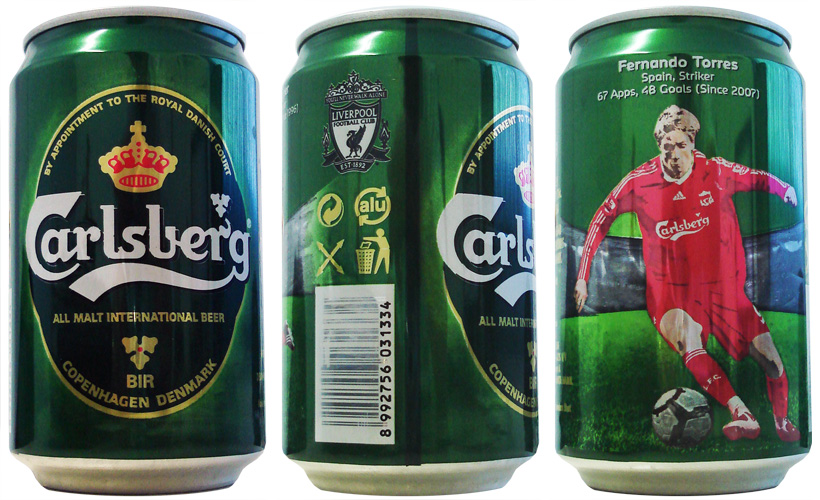 Fernando Torres, o atacante espanhol, também está no set de latas da Carlsberg em homenagem ao Liverpool.