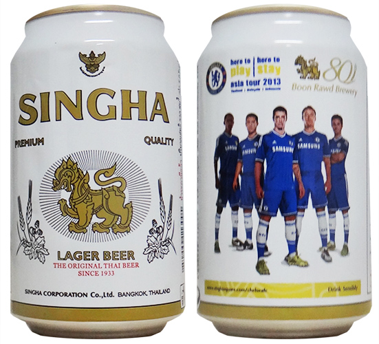 A tailandesa Singha, patrocinadora do clube, não perdeu a chance de lançar latas comemorativas ao evento.