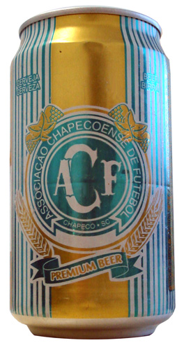 O escudo rodeado de ramos de lúpulo e cevada ornamentam a lata da Associação Chapecoense de Futebol, o alviverde de Chapecó.