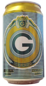 A lata do Goiás, a Premium Beer, é listrada de verde e branco e traz detalhes dourados ao redor do escudo e no pescoço da lata.