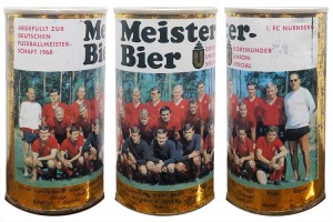A Meister Bier, da Dortmunder Union, é de 1968 e exalta os vencedores do Campeonato Alemão da temporada 1967-68, o 1. FC Nürnberg!