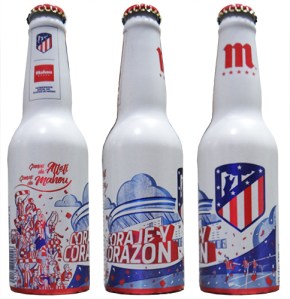A terceira e última da série de garrafinhas de alumínio lançadas pela Mahou para o Atlético de Madrid, com o slogan “Canas de Atleti, Canas de Mahou”.