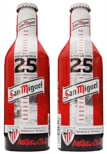 A cervejaria San Miguel lançou em 2010 esta belíssimia garrafa de alumínio para os torcedores do Málaga.