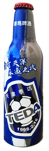 Abaixo, verá que o blog crava a fundação do clube em 1951, mas na garrafinha está a data de 16/2/1998. A segunda data se refere à mudança de nome para Tianjin TEDA, que persistiu até 2020.